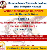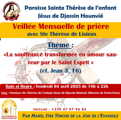 Diocèse de Porto-Novo : Jeudi 18h30 Paroisse St Michel de Ouando - Mardi 12h Centre Béthanie sis à Tokpota